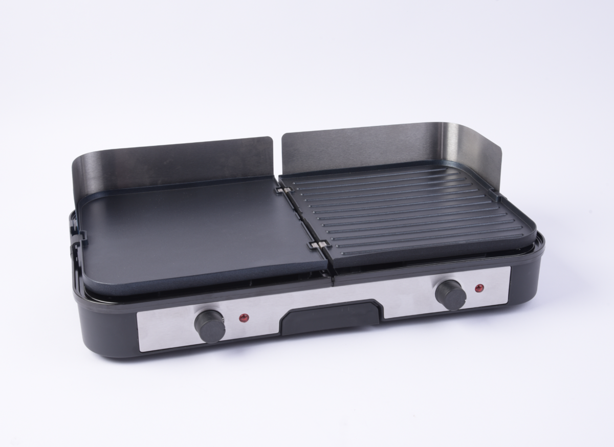 # FG823 FG. Plancha double zone Vous cherchez une plancha électrique de qualité pour préparer de délicieux repas en famille ou entre amis ? Ne cherchez pas plus loin, le FG823 FG. Plancha double zone est le compagnon idéal pour une cuisine conviviale et savoureuse. Découvrez toutes les fonctionnalités de ce produit exceptionnel ci-dessous : ## Caractéristiques techniques : – Plancha électrique avec 2 zones de chauffe – Taille d’une plaque : 26,5 x 24,2 cm – Thermostat réglable (5 niveaux) – Plaques bi-zones amovibles : plaque lisse et plaque grill – ECO TAXE : 0,42 ## Informations logistiques : – Poids net du produit : 3,6 kg – Poids brut du produit : 3,4 kg – Dimensions du produit seul : 24,2 x 26,5 cm – Dimensions du carton cadeau : 32,5 x 54 x 12,5 cm Avec le FG823 FG. Plancha double zone, vous pouvez cuisiner de manière flexible grâce aux deux zones de chauffe distinctes. Profitez d’une cuisson homogène et précise pour des plats parfaitement préparés. Le thermostat réglable vous permet de contrôler la température avec précision, offrant jusqu’à 5 niveaux de chaleur pour s’adapter à toutes vos recettes et préférences de cuisson. Les plaques bi-zones amovibles offrent une polyvalence incroyable : d’un côté, une plaque lisse idéale pour cuire les légumes et les poissons, de l’autre côté, une plaque grill parfaite pour les viandes et les saucisses. Passez d’une surface de cuisson à l’autre en un clin d’œil ! Grâce à sa taille compacte et à son design moderne, le FG823 FG s’intègre parfaitement dans toutes les cuisines, que ce soit à l’intérieur ou à l’extérieur. Facile à nettoyer et à utiliser, cet appareil deviendra rapidement un incontournable de vos repas en famille ou entre amis. Prof