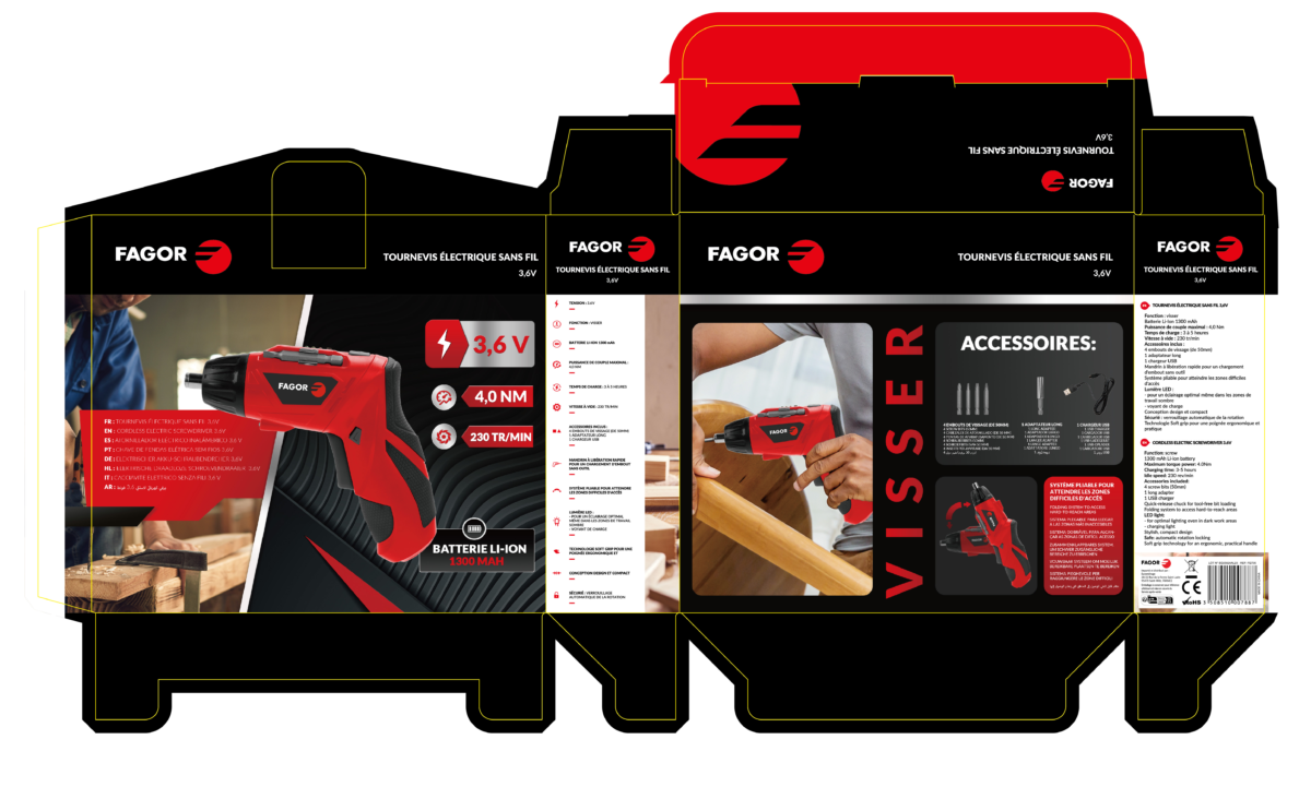 Découvrez notre Tournevis Électrique sans Fil 3,6V, l’outil de vissage parfait pour tous vos projets. Avec une puissance de couple maximale de 4,0 Nm et une batterie Li-Ion performante, il est prêt à l’emploi en un clin d’œil. Son design compact et pliable facilite l’accès aux zones difficiles. La lumière LED, le verrouillage automatique de la rotation et la technologie Soft grip en font un outil sûr et pratique. Livré avec quatre embouts de vissage, un adaptateur long et un chargeur USB, c’est l’accessoire indispensable pour votre boîte à outils. Commandez-le dès maintenant pour des vissages rapides et précis.